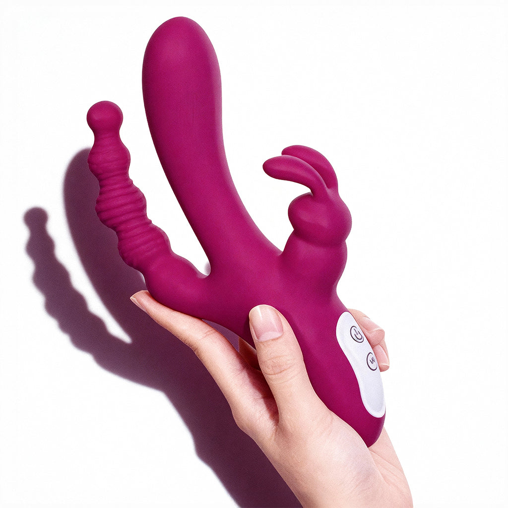 Meet Joker, the triple-action rabbit vibrator that’s absolutely no joke when it comes to pleasure. Designed to tease, please, and go all-in, Joker stimulates not one, not two, but three erogenous zones at once. With its lifelike, curved shaft targeting your G-spot, rabbit ears fluttering against your clit, and a bead-textured anal arm doing its own delightful thing back there, this toy is working overtime so you don’t have to. The semi-realistic main shaft delivers deep, pulsing inner vibrations designed to hit the G-spot like it owes you money. Meanwhile, the clitoral stimulator brings that signature bunny-ear energy to keep your orgasm right on edge (and then push it over). And let’s not forget the beaded anal shaft, slender, progressive, and sneaky in the best way. It slides in smoothly for that oh-so-satisfying "full" feeling without overwhelming first-timers.